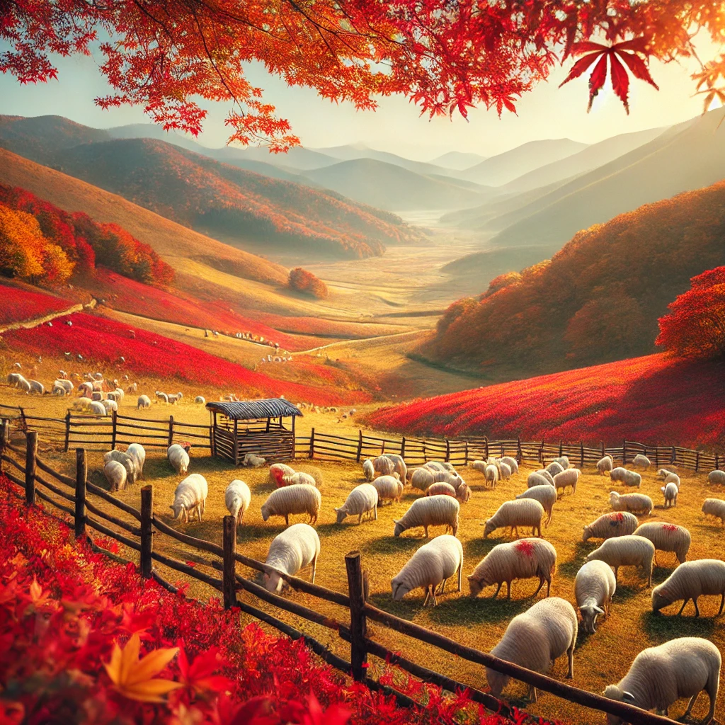 📦 "양떼목장에서 펼쳐지는 초지와 단풍의 조화, 가을의 특별한 기억을 남겨보세요."