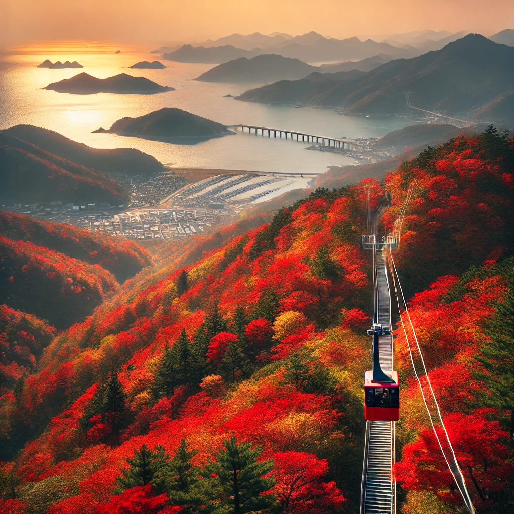 | 통영 한려수도 | 바다와 단풍이 어우러진 독특한 풍경을 자랑하며, 통영의 케이블카를 타고 한려수도를 내려다볼 수 있음. | 케이블카와 미륵산 정상에서의 단풍 풍경 추천. |