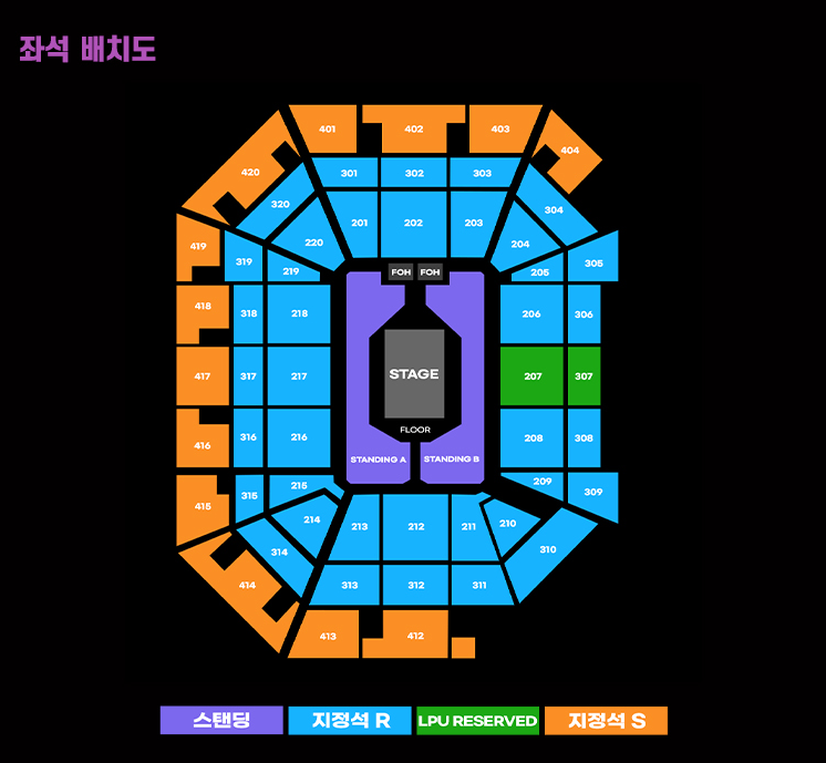 - 스탠딩석 관객은 공연 3시간 전부터 입장 번호 순으로 대기 후 순차적으로 입장합니다. 스탠딩 입장은 공연 2시간 전부터 시작되며, 입장 시간 이후에는 본인의 입장번호가 무효 처리될 수 있습니다.