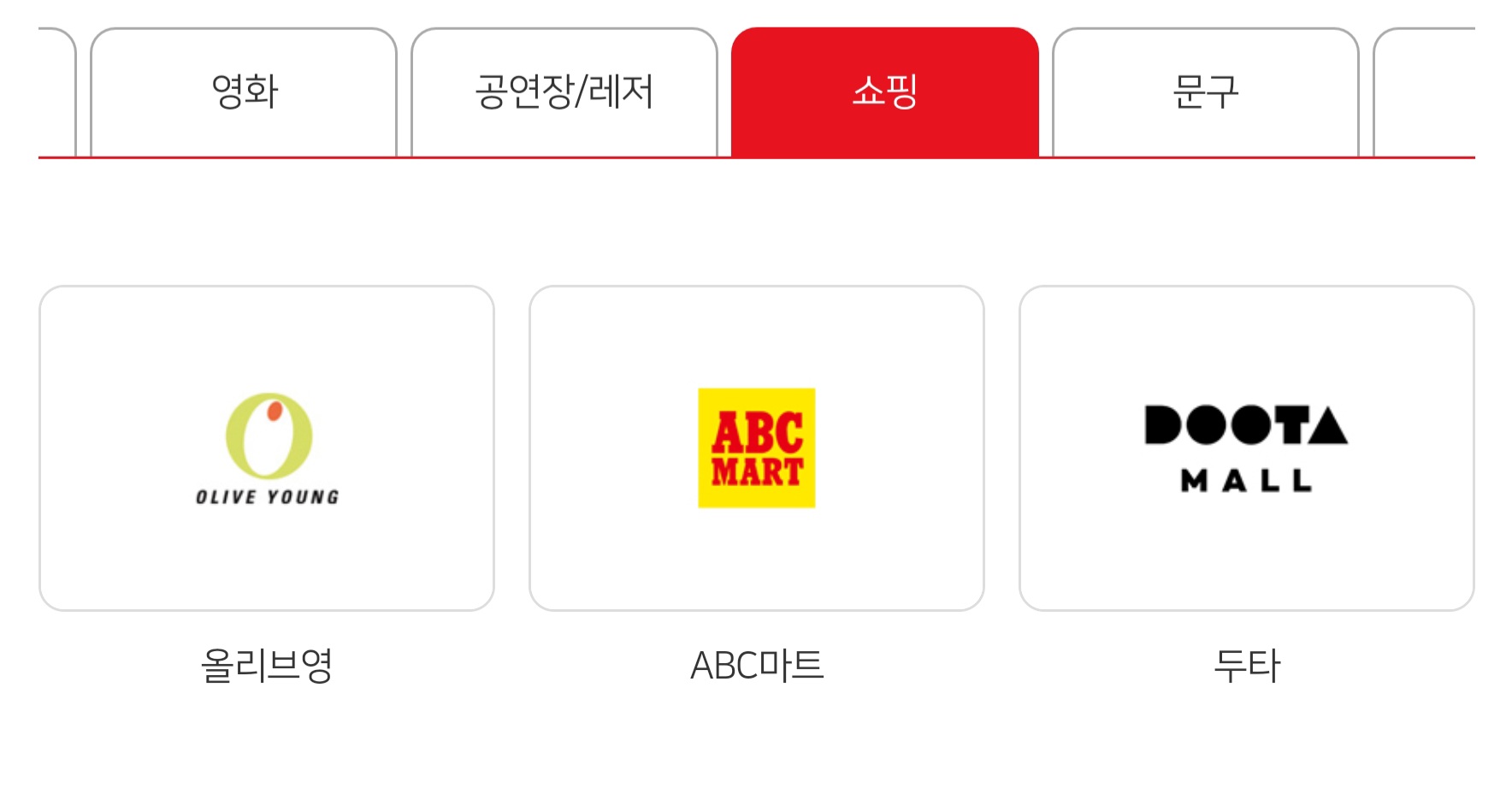 - 올리브영, ABC마트, 두타몰 에 사용할 수 있습니다.