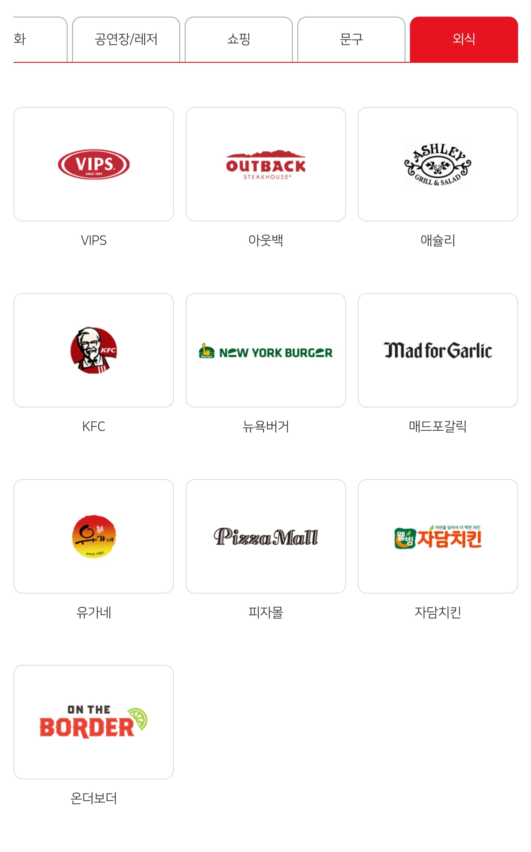 - 애슐리, 아웃백, 빕스, KFC, 매드포갈릭 등 주요 외식 브랜드에서도 사용할 수 있습니다.