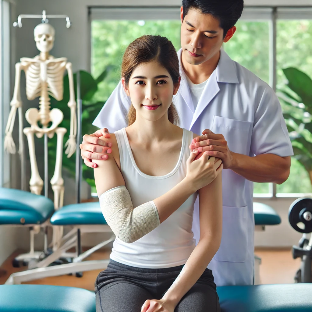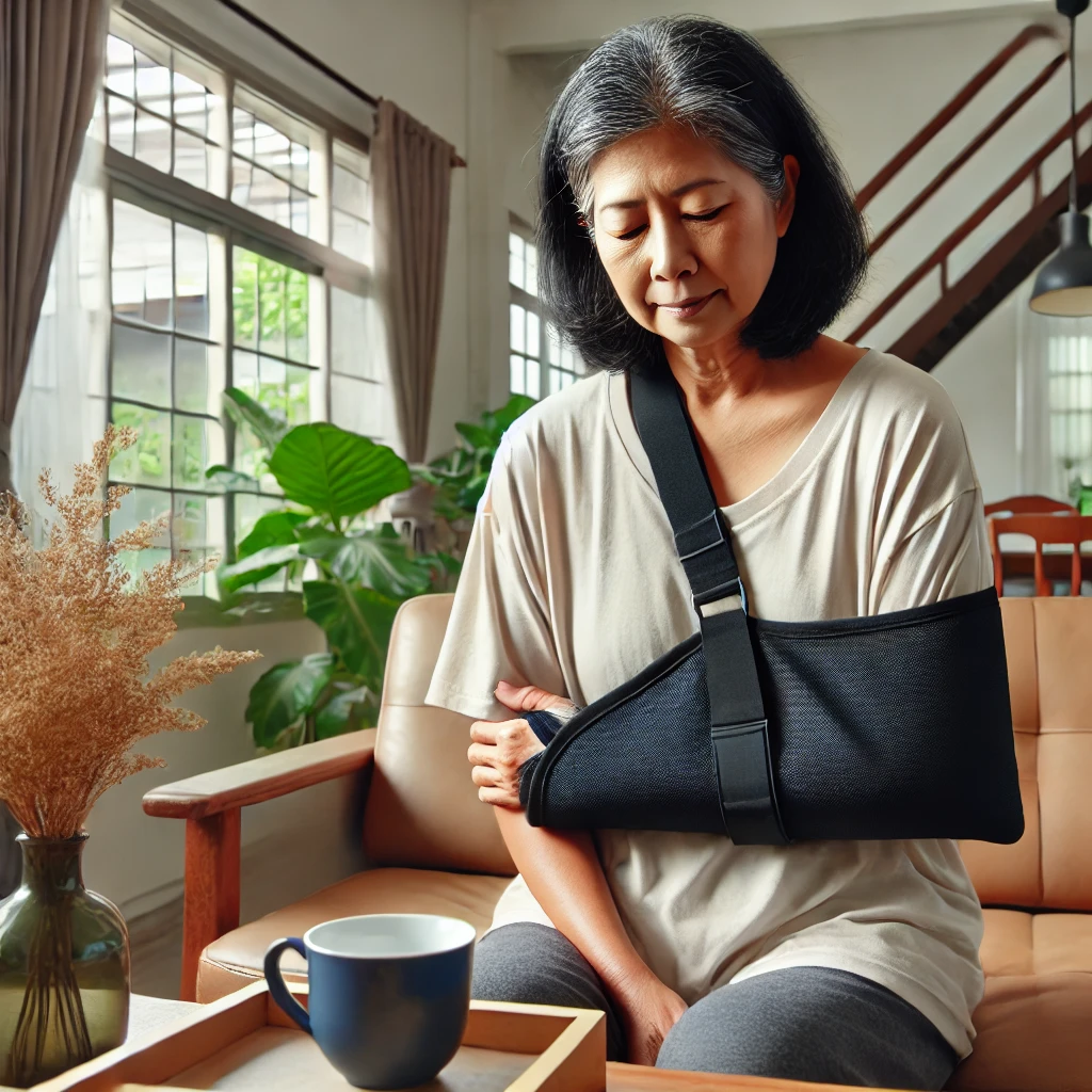 - 부목 착용: 어깨를 고정하여 회복을 돕습니다.
