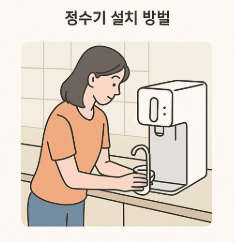 - 정수기 설치는 안정적이고 위생적인 공간에 해야 합니다.
